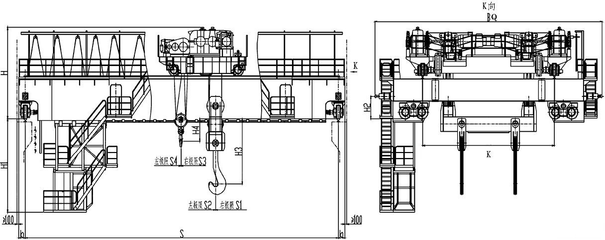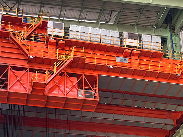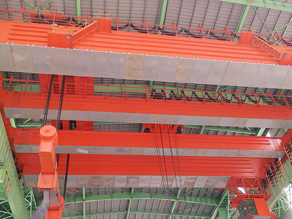 鑄造起重機(jī)是煉鋼連鑄工藝中的主要設(shè)備,主要用于轉(zhuǎn)爐加料跨向轉(zhuǎn)爐兌鐵水;在精煉跨將鋼液包吊運(yùn)至精煉爐或在鋼水接受跨將鋼液吊運(yùn)到連鑄大包回轉(zhuǎn)臺(tái)上。